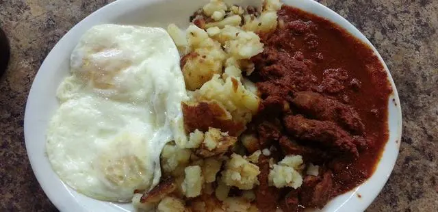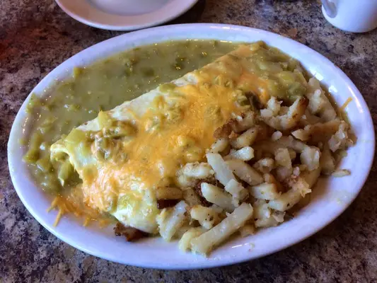 "he breakfast burritos, sided with home fries and smothered with earthy red chile, green chile or both, are legendary; we also suggest the green chile cheeseburger." Full review