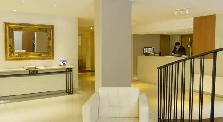 “In spite of its bland exterior and frumpy furnishings, the Director Suites Hotel boasts an upscale address and offers good value for its suites that come with a kitchenette.”