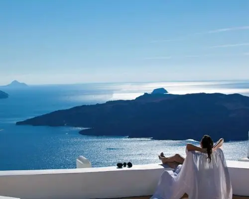 “Aria Suites comprises just six high-end villas set on one of the highest points just outside the center of Fira, on the west coast of Santorini.”
