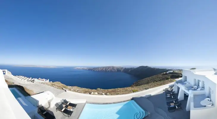 "One of the more chic and stylish boutique hotels in the area, the adult-only Avaton Resort also features a serene and relatively secluded position on the outskirts of Imerovigli village." Full review
