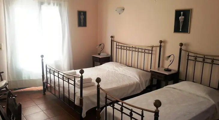 “Set in a tranquil neighborhood, surrounded by a garden, and vaulted and shimmering-white in archetypal Cycladic fashion, this is a nifty option (built in 2002) and one that is open all year.”