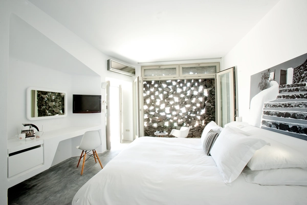 “Stylish Santorini sleep, with unbeatable sea views from its sparklingly white modern rooms and infinity pool.”