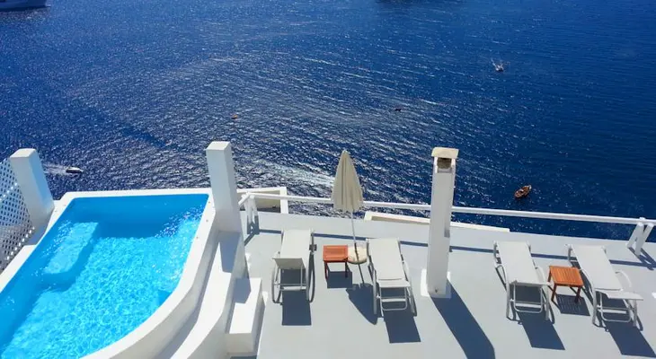 “Hotel Keti is a three-pearl boutique option overlooking the Caldera in Fira and within easy (via steps) walking distance to Greek restaurants and boutique shops.”