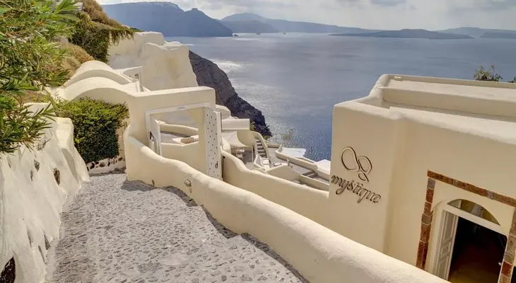 "Mystique Luxury Collection Hotel is a five-pearl chain hotel situated on a cliff face in Oia." Full review