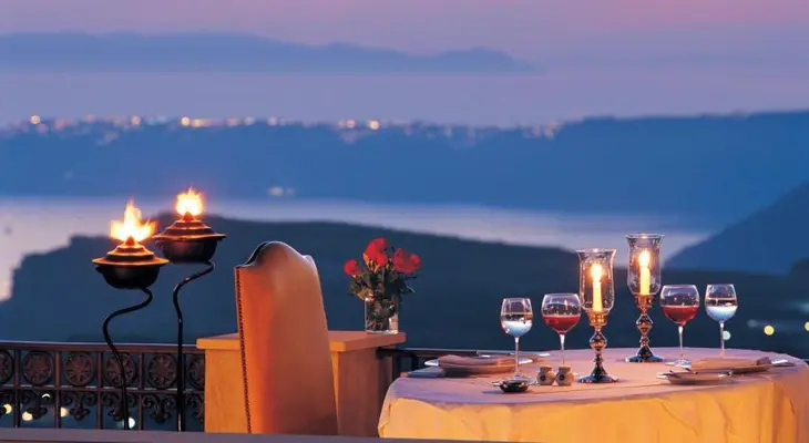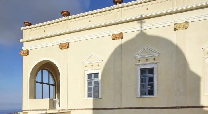 "Elegant 19th-century villa-hotel overlooking Santorini and the surrounding islands from a timeless medieval village." Full review