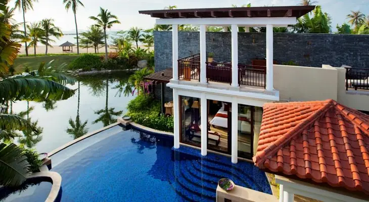 A 401-room beach resort in South China with five restaurants and views of the landscaped grounds, the pool, and Yalong Bay. — Condé Nast Traveler