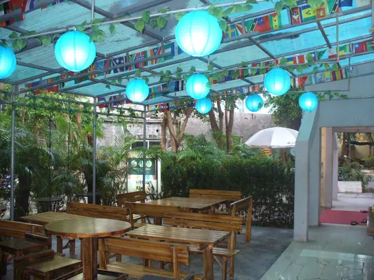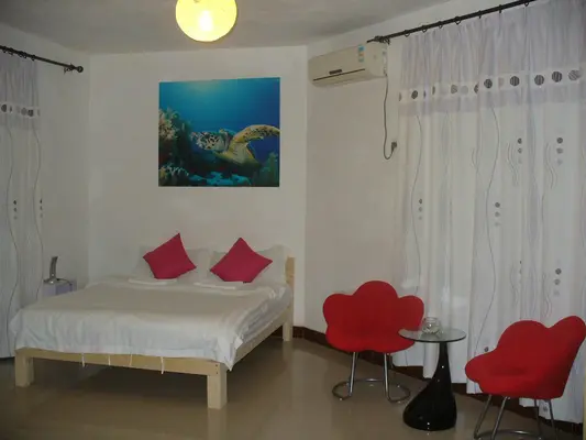 "Clean and modern new hostel in low-rise villa with clean rooms and small outside bar; they specialize in PADI scuba courses and also rent surfboards."