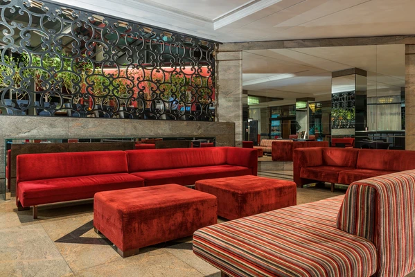 “The Sheraton hotel is part of a multiuse complex that includes the adjacent office tower and upscale shopping mall that specializes in interior decorating and design.”