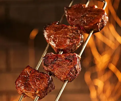 Appropriately kitted out in typical regional costume, gaucho-dressed staff pass through the large, busy dining room in co-ordinated fashion serving the very best cuts of Brazilian and Uruguayan meats. — Michelin Guide