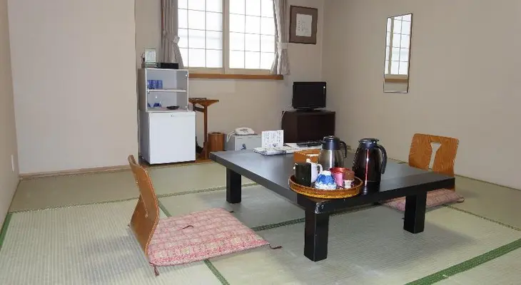 "A spacious, traditional Japanese inn within a modern building two minutes east of the Ainu Museum."