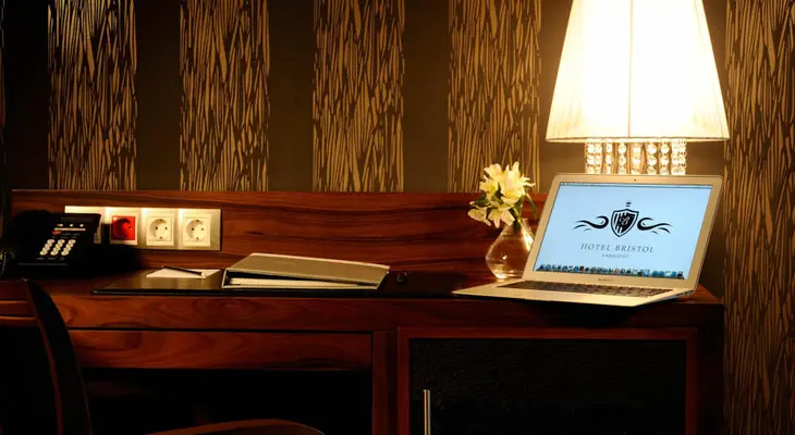 “Originally dating from 1976 but rebuilt in 2011 as a high-class business hotel, the Bristol's open lobby is given character by translucent marble columns, the corridors with subtle back-lit swirls.”