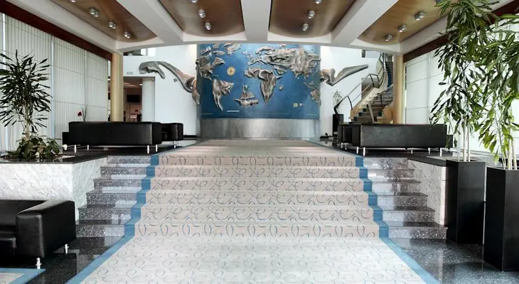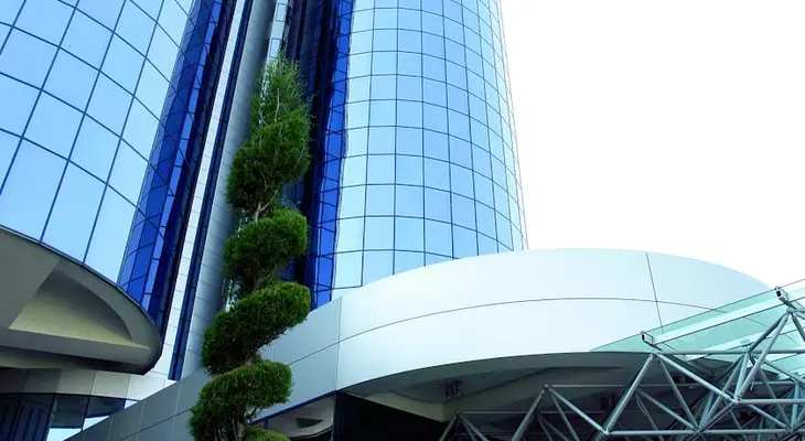 “If you want a curly foetus-shaped swimming pool, rotating 15th-floor restaurant, big high-ceilinged rooms and easy parking, this four-lobed blue-glass cylinder might be for you.”