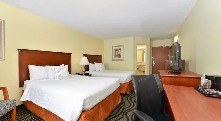 “This reliable budget hotel offers standard but comfortably appointed guest rooms with large, well-lighted desks and well-kept bathrooms.”