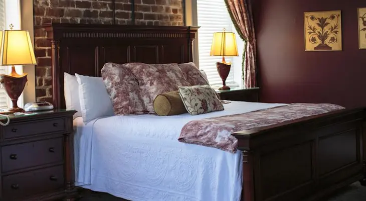 “The small, historic East Bay Inn is located smack dab in the middle of Savannah's Historic District, and caters to older clientele who can appreciate its feeling of a bygone era.”