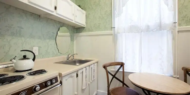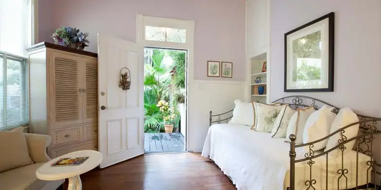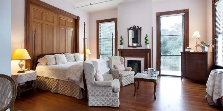 "A yellow, wood-frame Queen Anne home (circa 1893), its exterior, gardens, and courtyard are its most appealing features." Full review