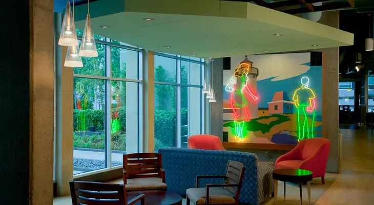 "With its vibrant, colorful atmosphere and generous use of natural light, this hotel offers a refreshing stay in the University District."