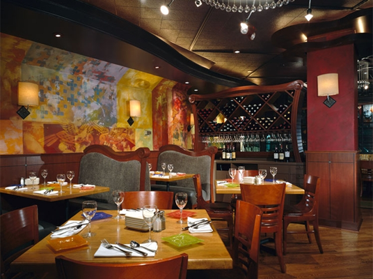 "Italian, Mediterranean, American and Spanish plates are well-presented, pretty tasty. Think Tuscan tomato bread soup, Moroccan grilled chicken skewers, and seafood risotto."