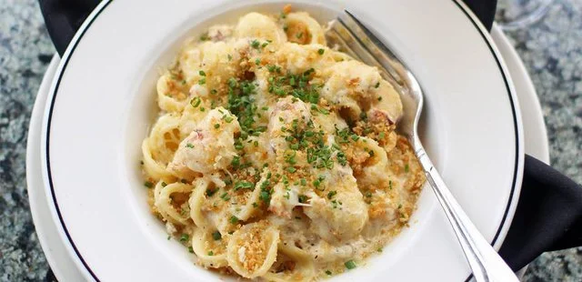 “We enjoy dropping in for a comfortable, laid-back meal, sitting out on the deck when weather allows, or in the lounge listening to live music. A favorite starter is the coconut-tempura tiger prawns.”