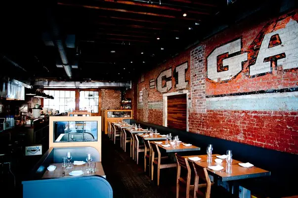 "You could have a terrific birthday dinner around a big table at Staple & Fancy if you order small plates, eat pasta, drink wine...the space looks like a classy brick shipping warehouse. " Full review
