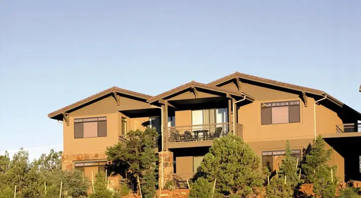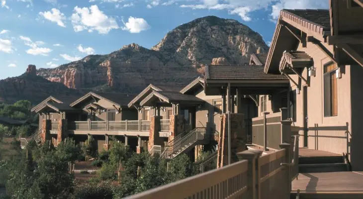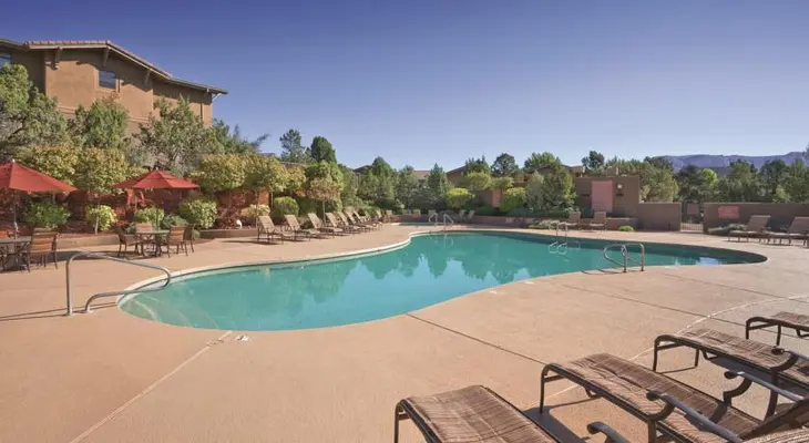 “The Wyndham Sedona is a upper-mid-range time-share condo hotel in a scenic, residential part of Sedona, with one and two-bedroom apartment-style suites.”