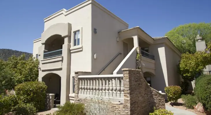 “The lower-middle-range Sedona Ridge is just off Highway 179 in the Village of Oak Creek, with 118 rooms housed in 23 tan stucco buildings on a sprawling property.”