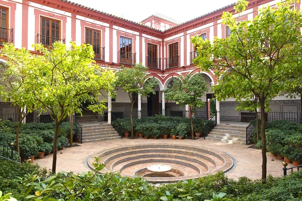 Built in the 15C-16C, Las Dueñas Palace, the residence of the prestigious Alba family, is a sumptuous example of a Seville "casa-palacio". — Michelin Guide