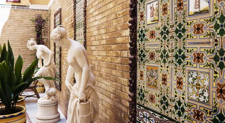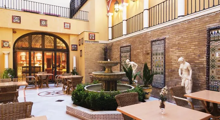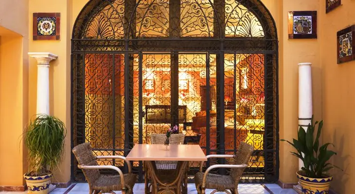 “This is a typical Andalusian hotel with colonial styling such as arches, balconies, tall windows, antiques, lamps, columns, and colorful tiles.”