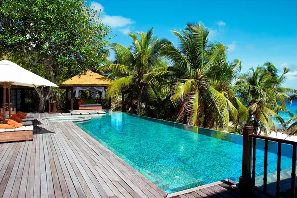 "Hideaway resort on a lush 740-acre private island, a 15-minute flight from Seychelles International Airport." Full review