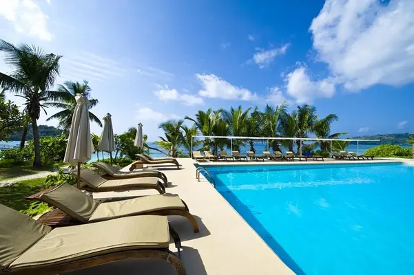 “The 42-room New Emerald Cove is an upper-middle-range resort set on beautiful, beachfront grounds.”