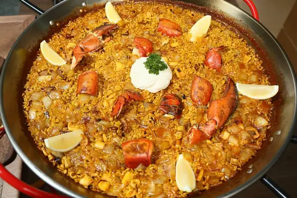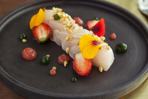 The huge menu offers something for most tastes, and surprises for everyone. A rich gazpacho is served with toasted bread, tomato, roasted chile peppers, fresh anchovies, and arugula. — Condé Nast Traveler