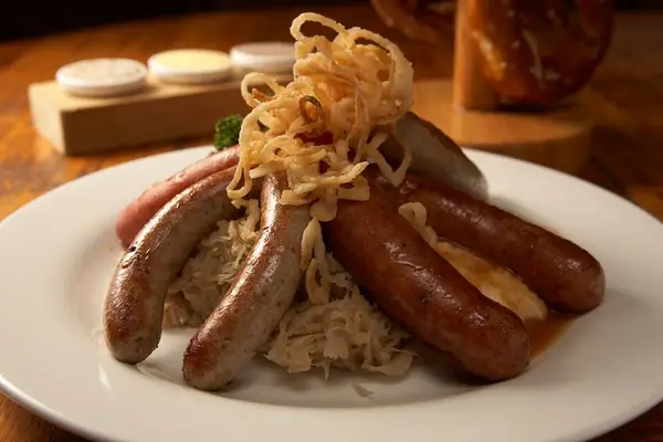 "The in-house German-style brewery makes its own Münchner ale and lager, which goes down well with heaps of sauerkraut, sausages, cabbage, and bratwurst." Full review