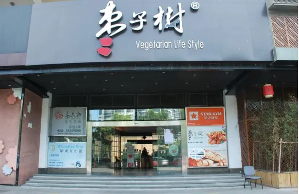 “Zao Zi Shu boasts no eggs, meat, fish, fowl, or MSG. Fake meat dishes are prominent, most of them created with tofu, and many of the patrons are monks in flowing robes.”