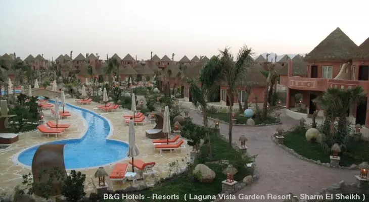 “The 160-room Laguna Vista Garden Resort is a lush oasis in Nabq Bay, offering a quick walk to the beach, four lagoon pools, a buffet restaurant, and a swim-up bar.”