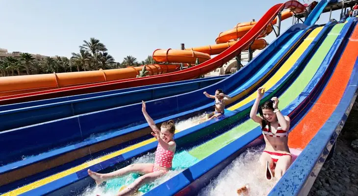 “An expansive and lively luxury resort with direct beach access, a water park, and all-inclusive dining and drinking at multiple international restaurants and bars.”