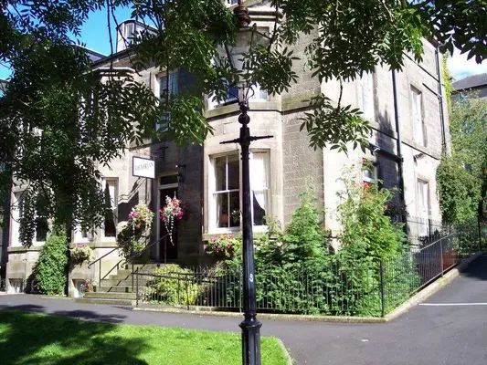 “Overlooking the Pavilion Gardens, this elegant house has eight individually decorated bedrooms furnished with Victorian and Edwardian antiques.”