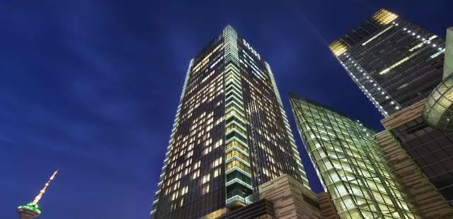 Modern high-rise in the heart of town, with health club and Irish bar; the entrance is just off Nanjing Lu. — Rough Guide
