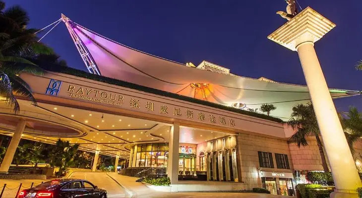 “The theme is pure Italian Renaissance, right down to the Venetian gondolier uniforms worn by the staff, and the wide spiral staircases and long hallways give the place an M.”