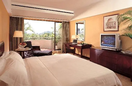 “This hotel's retro space-age exterior, featuring rounded balconies that look as if they might detach from the mother ship at any moment, greets visitors arriving on the ferry from Hong Kong.”