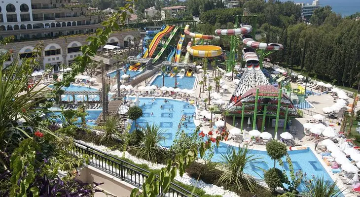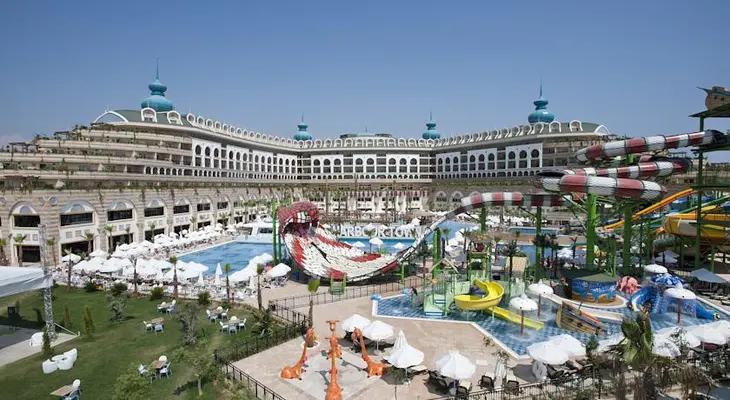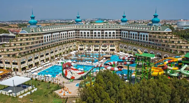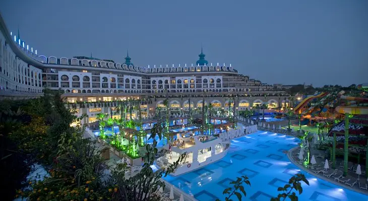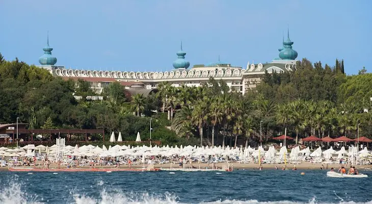 “The all-inclusive, luxury Crystal Sunset Luxury Resort & Spa is a 10-minute walk from the beach in Side.”