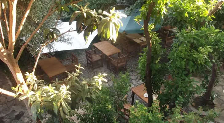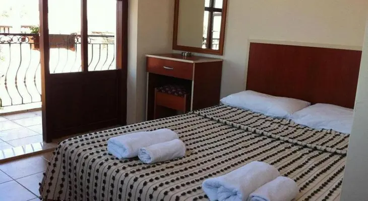 “Simple and peaceful rooms with artfully arranged origami towels and plastic flowers on the bed...roof terrace with views of the temple and sea beyond the village roofs.”