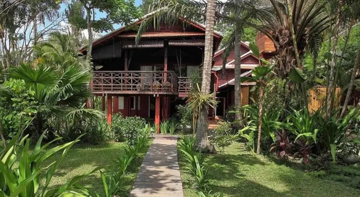 Individual wooden bungalows, swimming pool, nice gardens and a French restaurant. Has its own elephants available for rides. — Insight Guides
