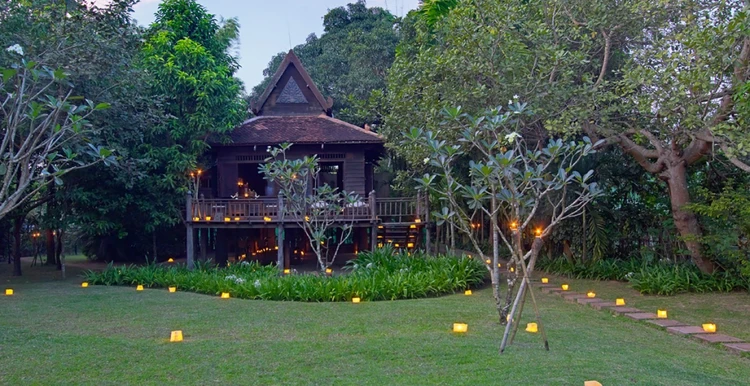 Sophisticated hotel on eight lush, manicured acres that replicates the look and feel of a traditional Cambodian village. — Hideaway Report