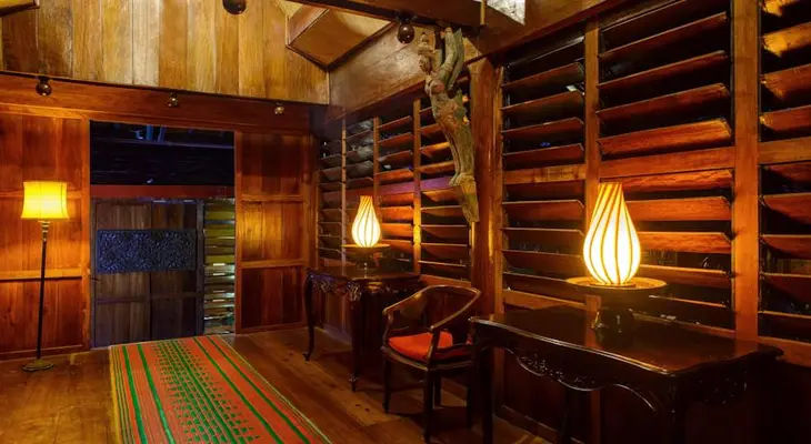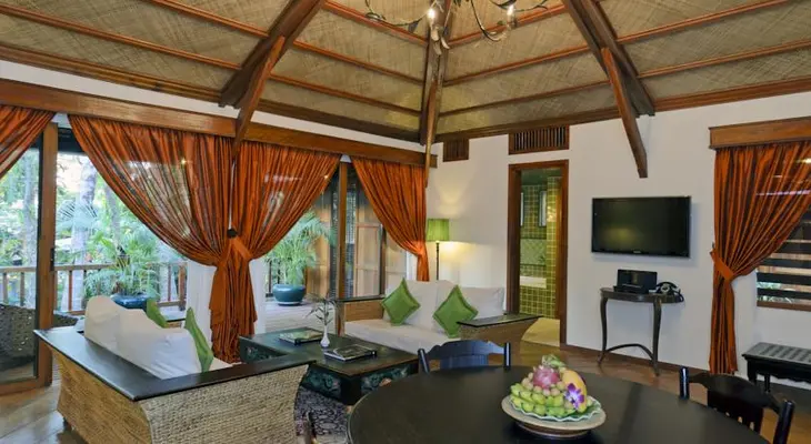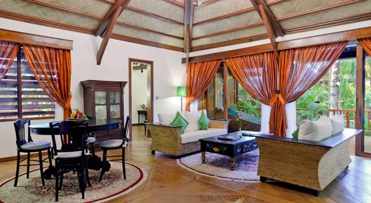 “Individual wooden bungalows, swimming pool, nice gardens and a French restaurant. Has its own elephants available for rides.”