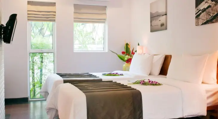 “Attractively renovated French colonial villa with a range of well-equipped rooms: choose between the slightly austere Garden Courtyard Rooms and the fancier Colonial Heritage Suites.”