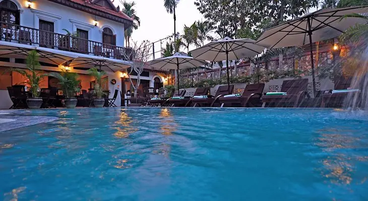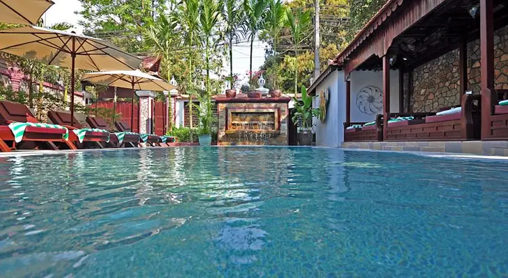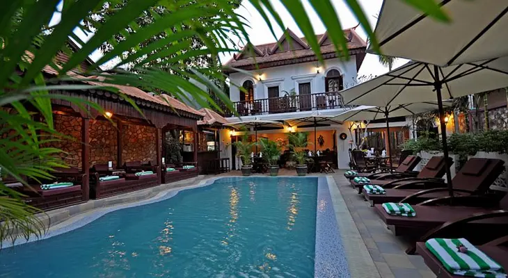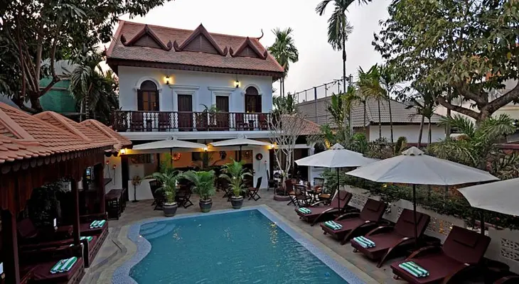 “A boutique hotel with traditional Cambodian stylings, HanumanAlaya Villa is set around a lush garden and pretty swimming pool.”