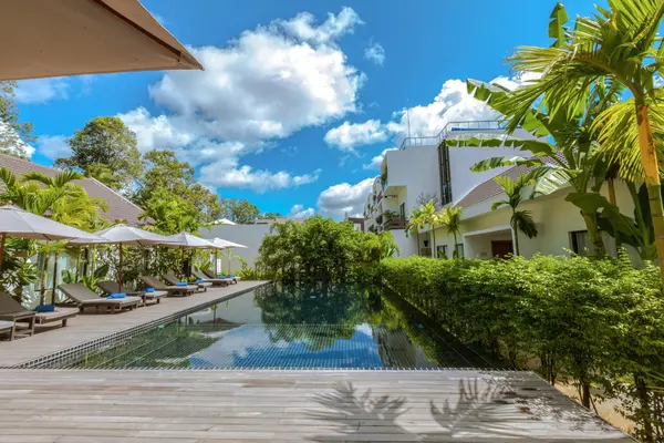 “The 46-room Lynnaya Urban River Resort & Spa is an upper-middle-range option situated in a quiet location on the east side of the river.”