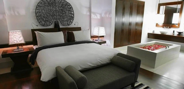 "An architecturally modern and chic place, this Art Deco hotel has a centerpiece courtyard crowned by a banyan tree, which is surrounded by a bar and minimalist rooms finished in dark wood."