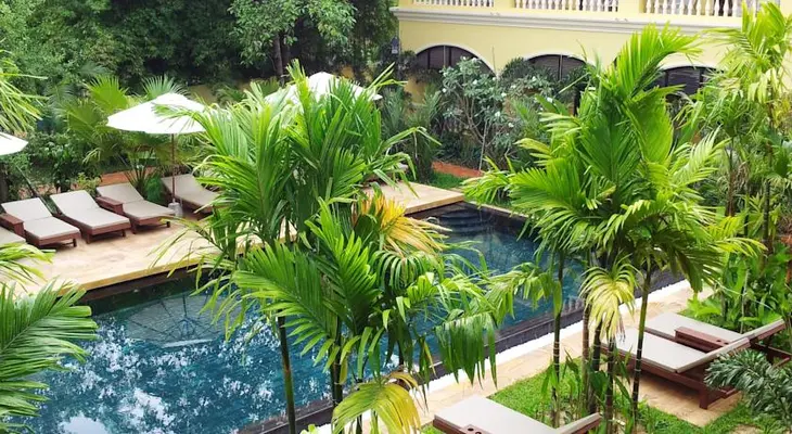 “The Pavillon d'Orient is a small boutique hotel with 35 rooms, located on one of the access roads into Angkor Wat, slightly outside the town center of Siem Reap.”