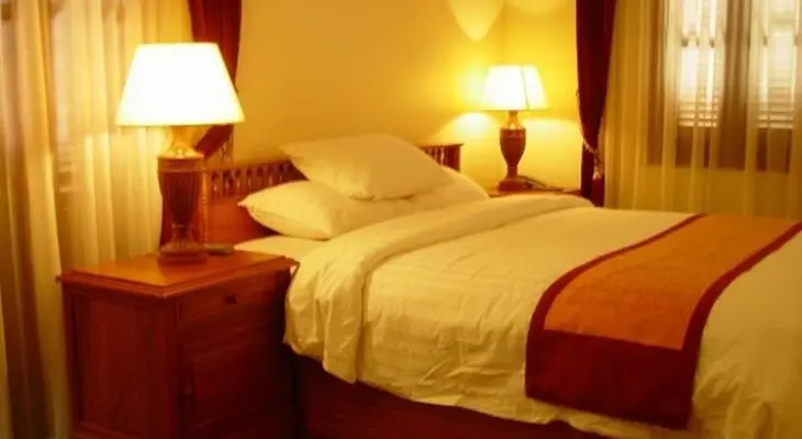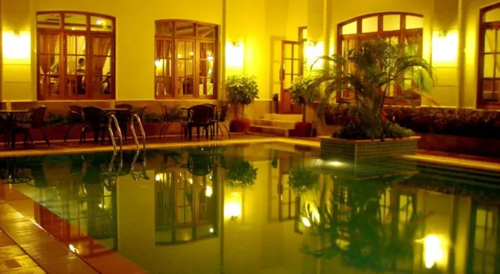 "Biggish mid-range hotel on a quiet street in the heart of town, offering bright, airy rooms plus swimming pool, gym, sauna and restaurant."