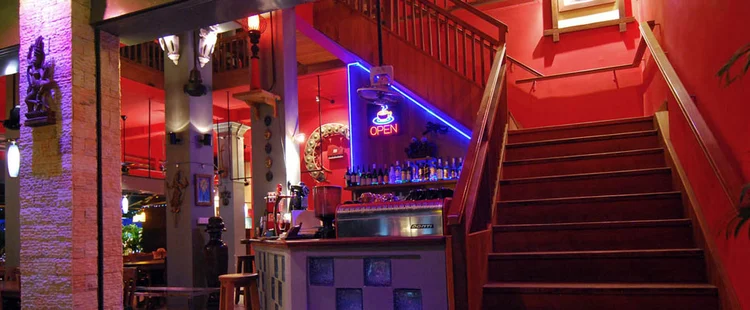 "Imported steaks, spaghetti, sandwiches, salads, and international specialties like good Indian samosas or chicken cordon bleu round out a great menu of familiar fare." Full review